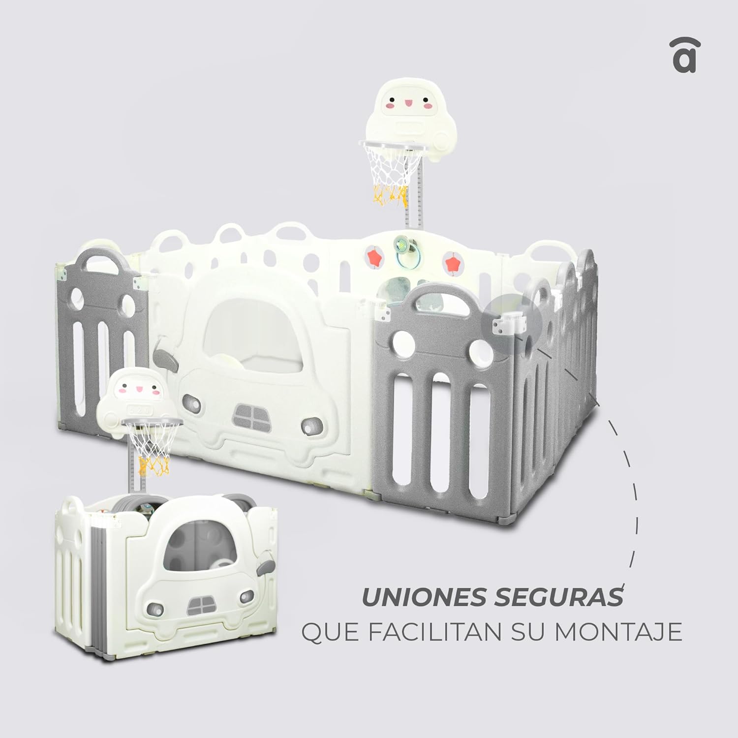 Améliore les compétences : Un parc très complet, conçu par des professionnels pour développer l’autonomie des plus petits. Ses activités et ses couleurs les aideront à développer leurs capacités cognitives, leur intelligence et leur motricité, ainsi qu’à éveiller leur curiosité en explorant les différents éléments.